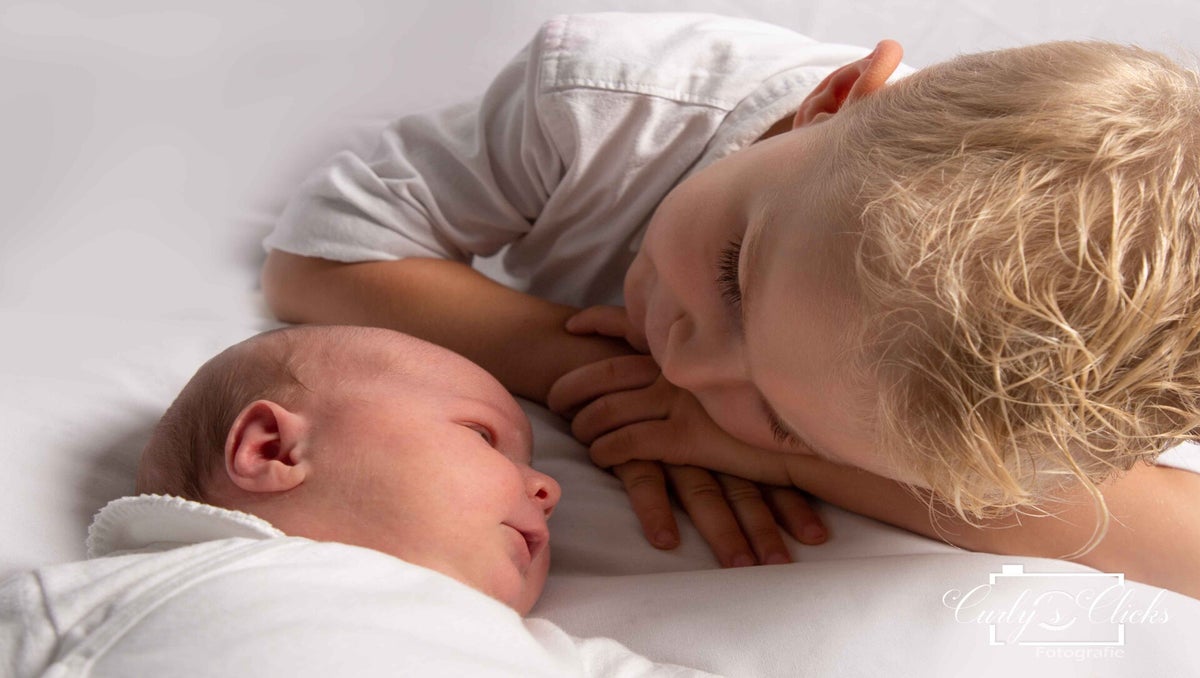 Kies voor wit en je krijgt mooie pure foto's waarbij de ouders met het gezicht en de handen erbij gefotografeerd worden.